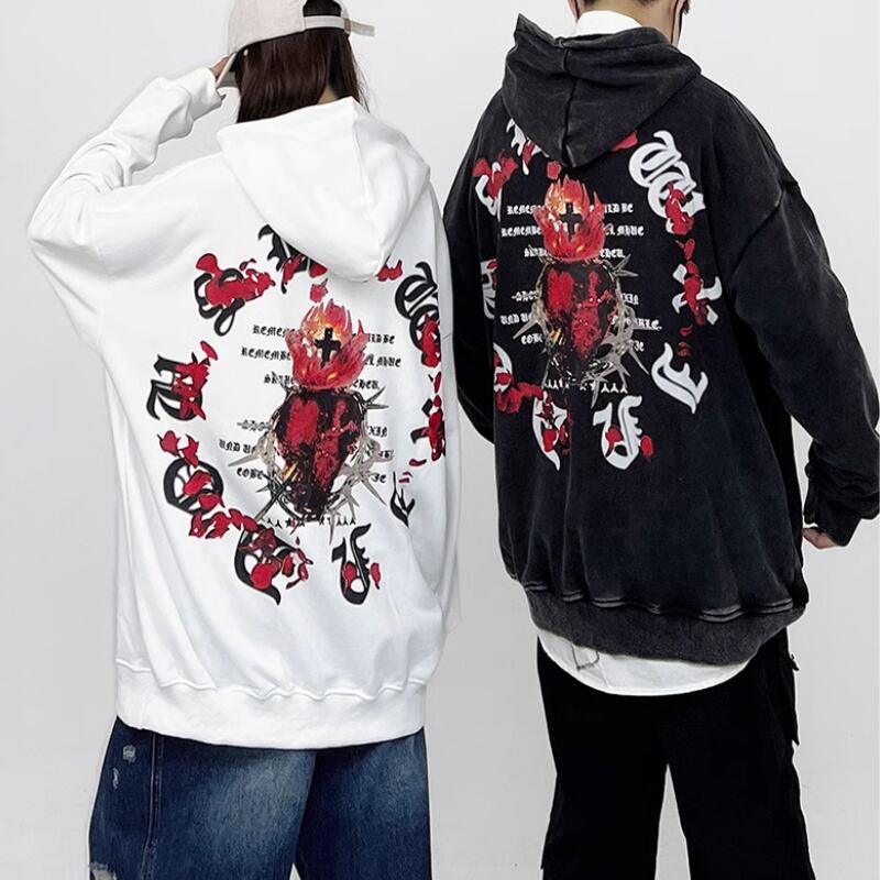 【FLEX0100】Gothic Logo Print Washed Hoodie