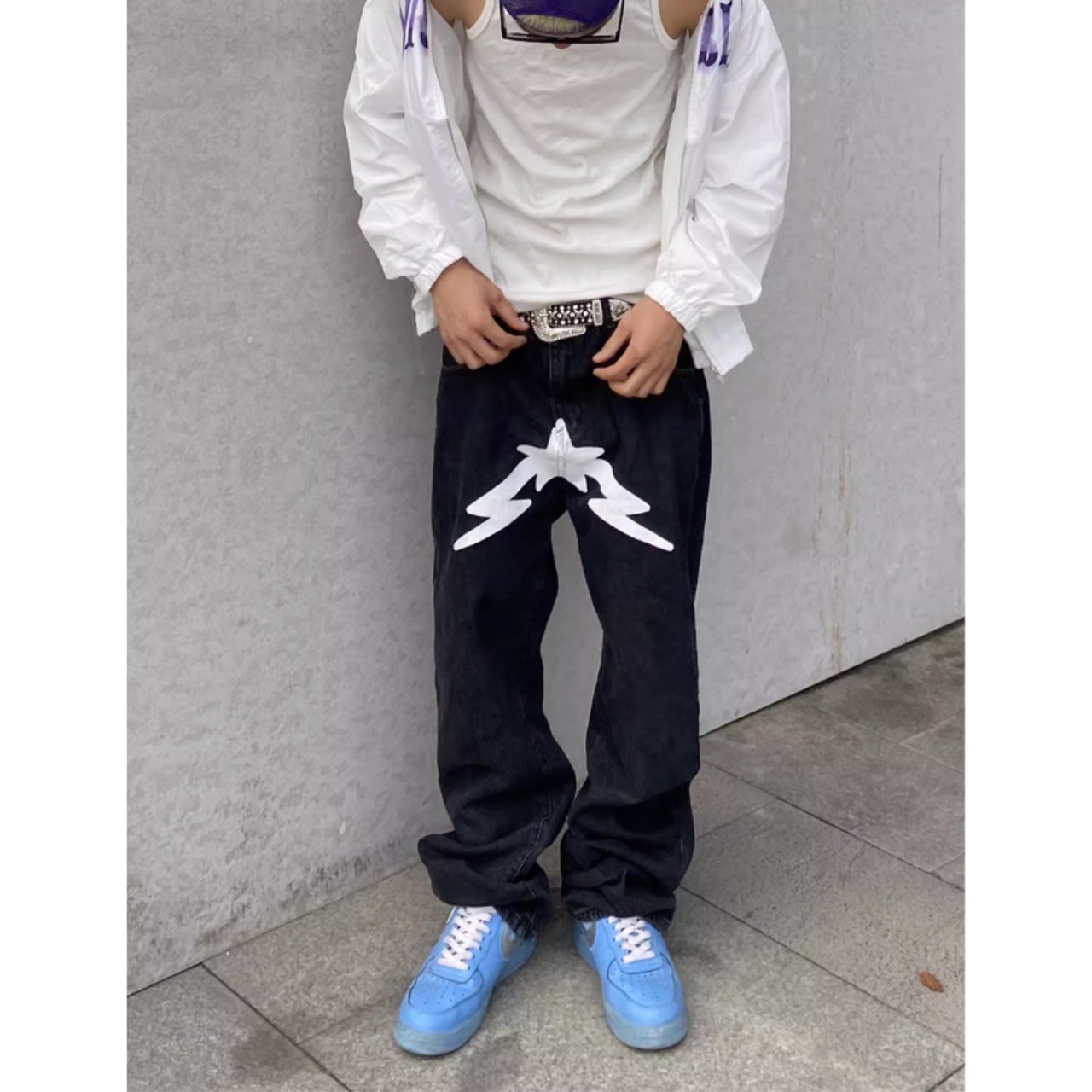 【FLEX0104】Shooting Star Design Straight Denim