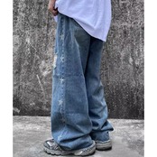 【FLEX0495】Side Star Line Damaged Denim