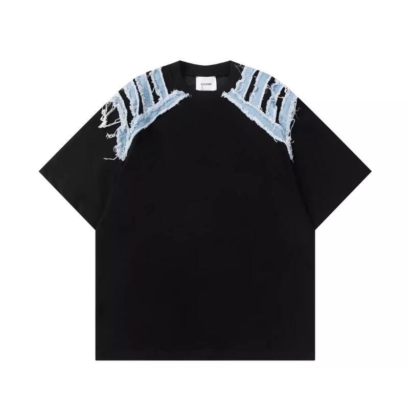 【FLEX0583】Shoulder Denim Patch Design Tee