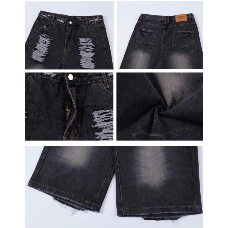 【FLEX0699】Washed Damaged Denim Shorts