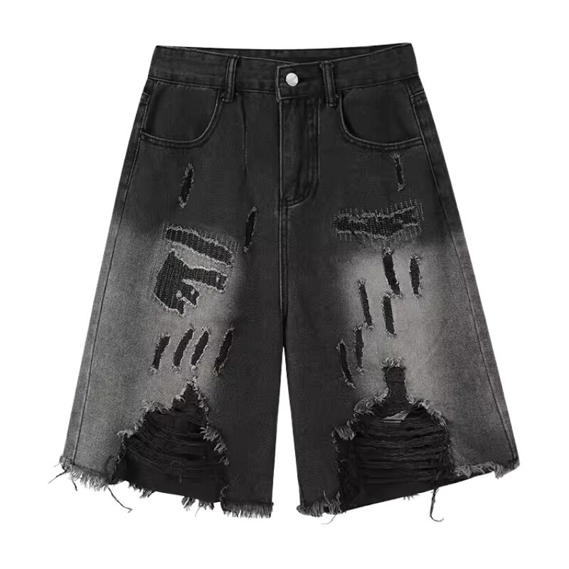 【FLEX0729】Hard Damage Patch Denim Shorts