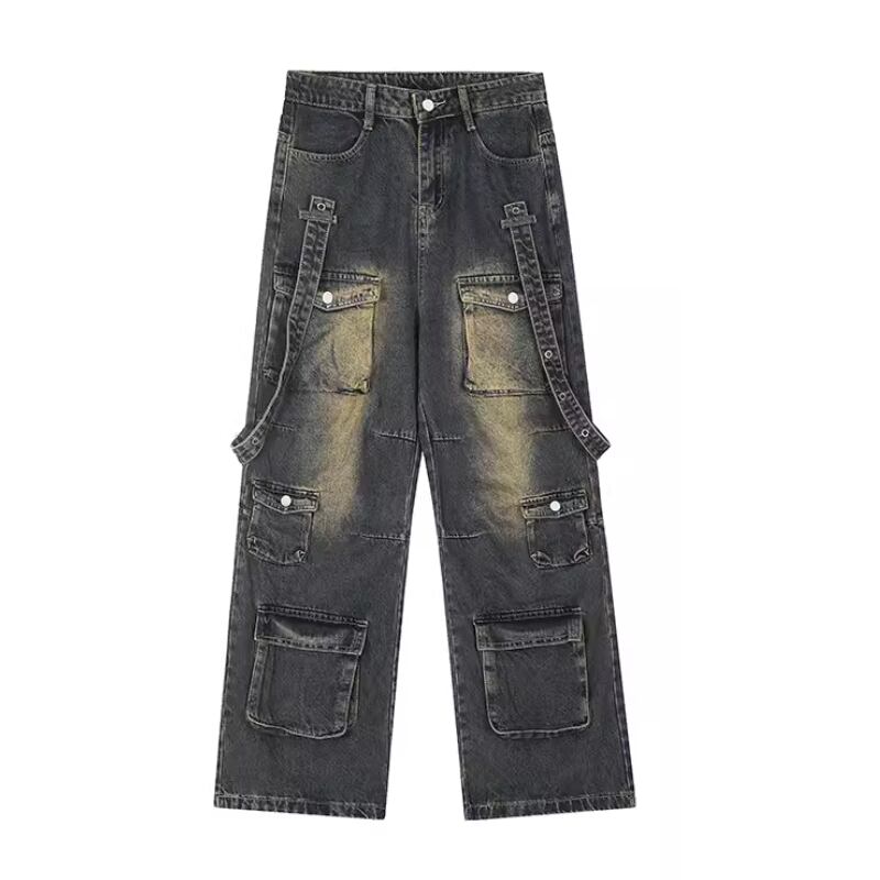 【FLEX0967】Multi-Pocket Strap Damaged Denim