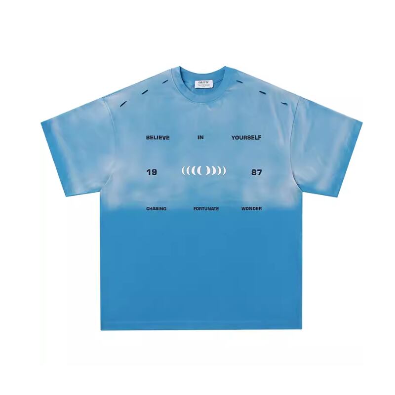 【FLEX1098】Washed Old Gradient Letter Print Tee