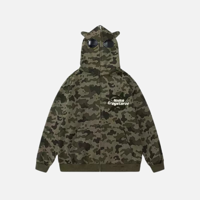 【FLEX1634】Camouflage Face Zipper Hoodie